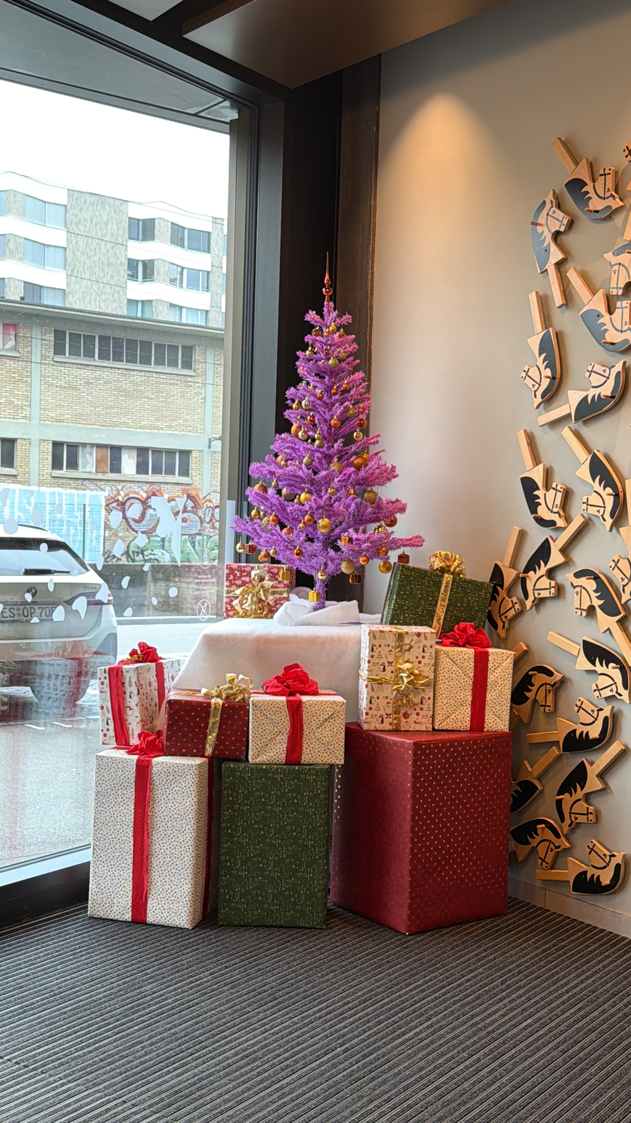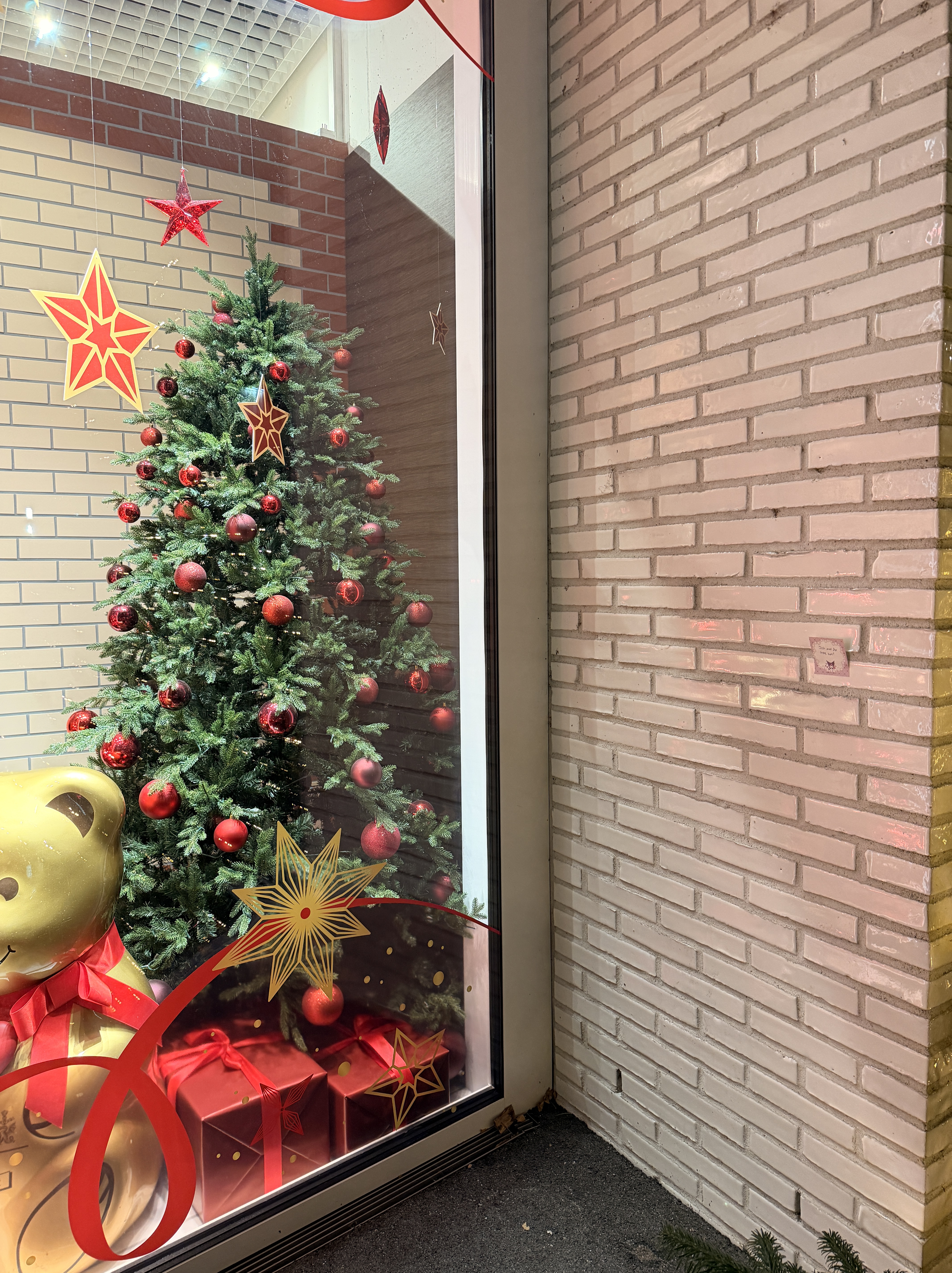 Oh, before I forget, thank you for the purple and yellow Christmas tree in my hotel! I would not have noticed it if I didn’t turn around right before entering the lobby. Very cute sign, please keep ‘em coming, if that’s okay!