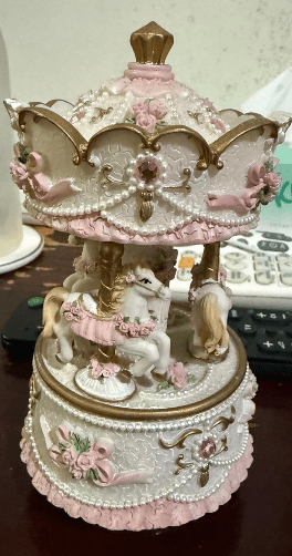 One of the shops we visited was selling very pretty Christmas ornaments. In particular, I was deeply fascinated with the little carousels that would spin and play music. While I was contemplating buying one, you stopped me and said you could get one from me online for a much better price. And so we didn’t buy it.